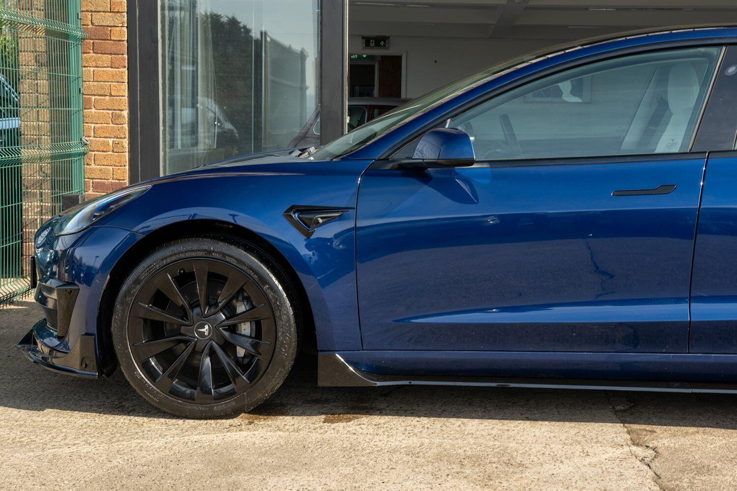 This Model 3 features an aerodynamic bodykit, which not only enhances its appearance but also helps to improve its overall performance. The vehicle is also equipped with a range of convenient features, including 360 degree cameras, a panoramic glass roof, and a reversing camera, making it easy to navigate and park in tight spaces.